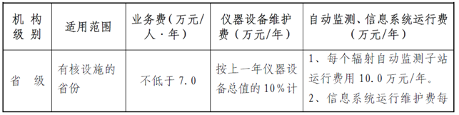 根据国家有关法律法规的规定以及环保总局、中央编办、发展改革委、财政部、科技部五部委关于加强核与辐射安全监管能力建设的意见,各级政府应给本地区环保部门在相关人员编制和经费保障方面提供必要的条件,提高监管能力,使之有效履行职能,切实管好放射性同位素与射线装置,保障核与辐射安全,其中要重点保障辐射环境监测与监察运行经费,支持各项业务正常稳定运行,对仪器设备更新维护等开展辐射环境监测与监察业务的基础条件应予以支持。辐射环境监测与监察机构业务费、仪器设备更新维护费、自动监测系统运行费及信息系统运行维护费标准见表2。